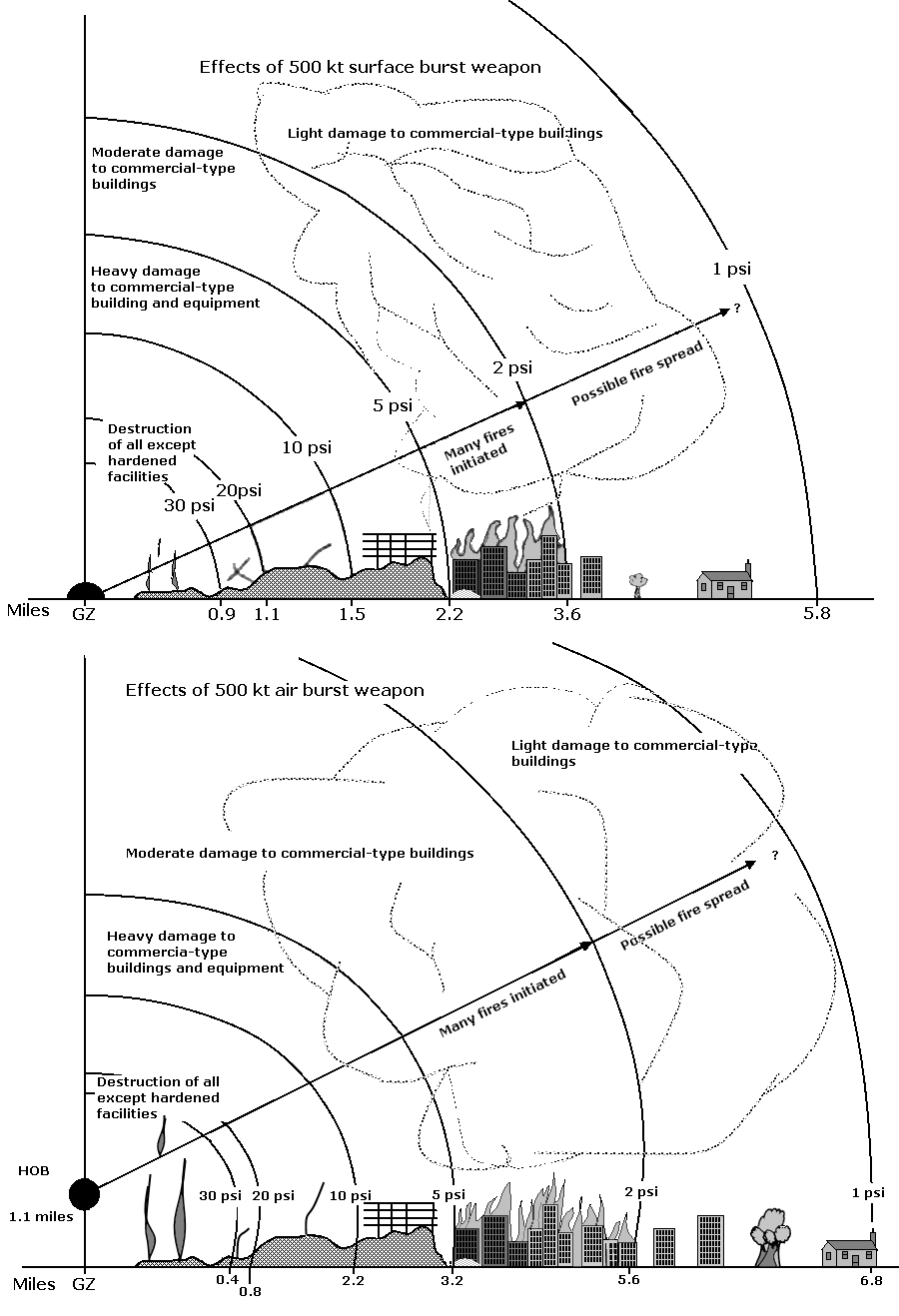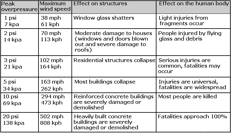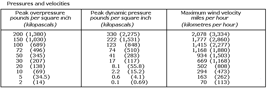 nuclear weapons effects in kilo Pascals. Standard atmospheric pressure