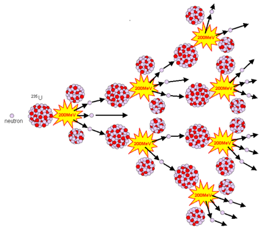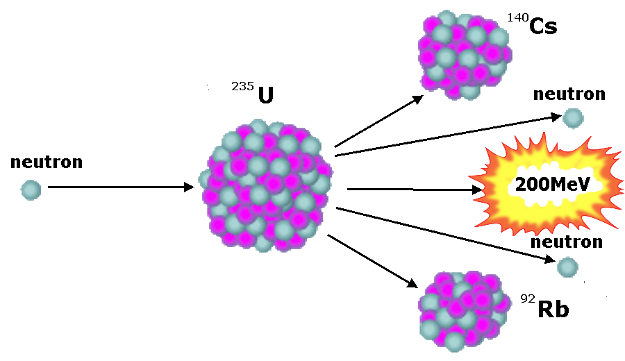 At the same time one to three neutrons are released. The fissile