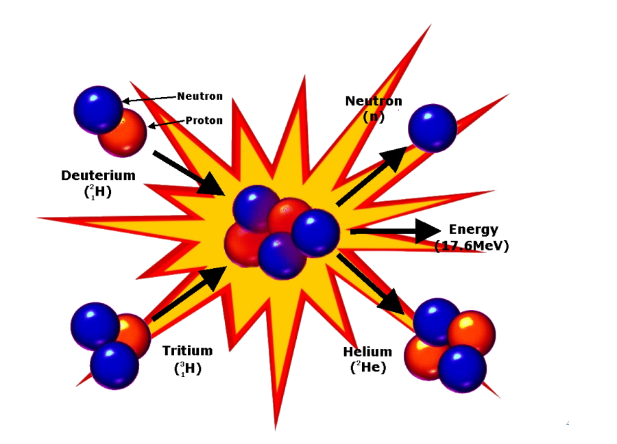 in the reaction, and tritium (3 mass units) which then fuses