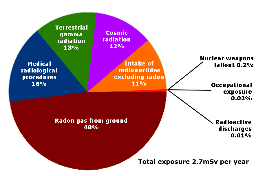 geology, cosmic radiation, industrial pollution, fallout from nuclear