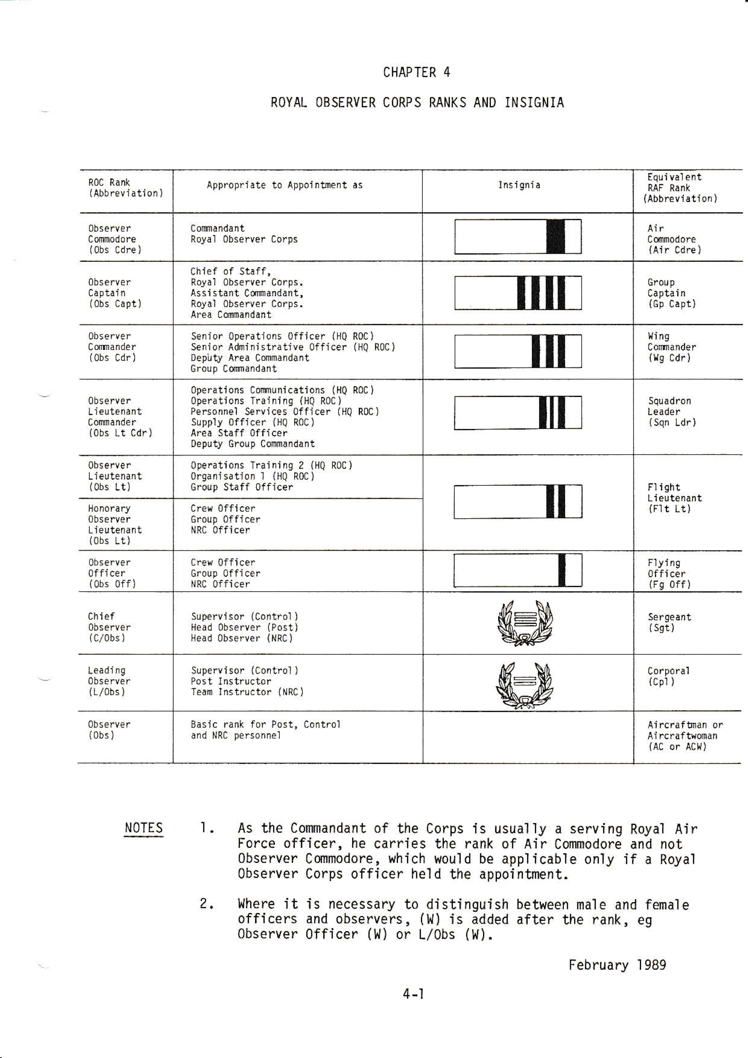 appointment of Air Comodore-in-Chief, Royal Observer Corps, in